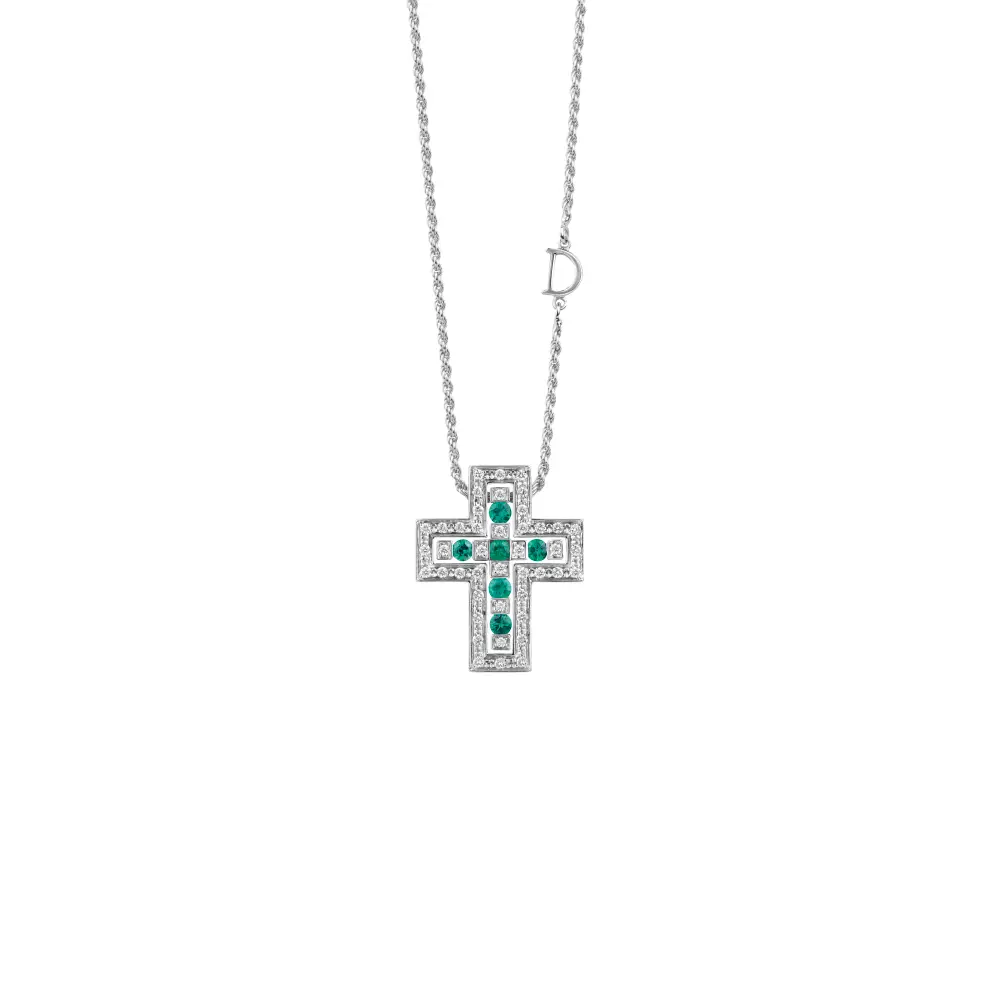 Collana oro bianco con diamanti e smeraldi