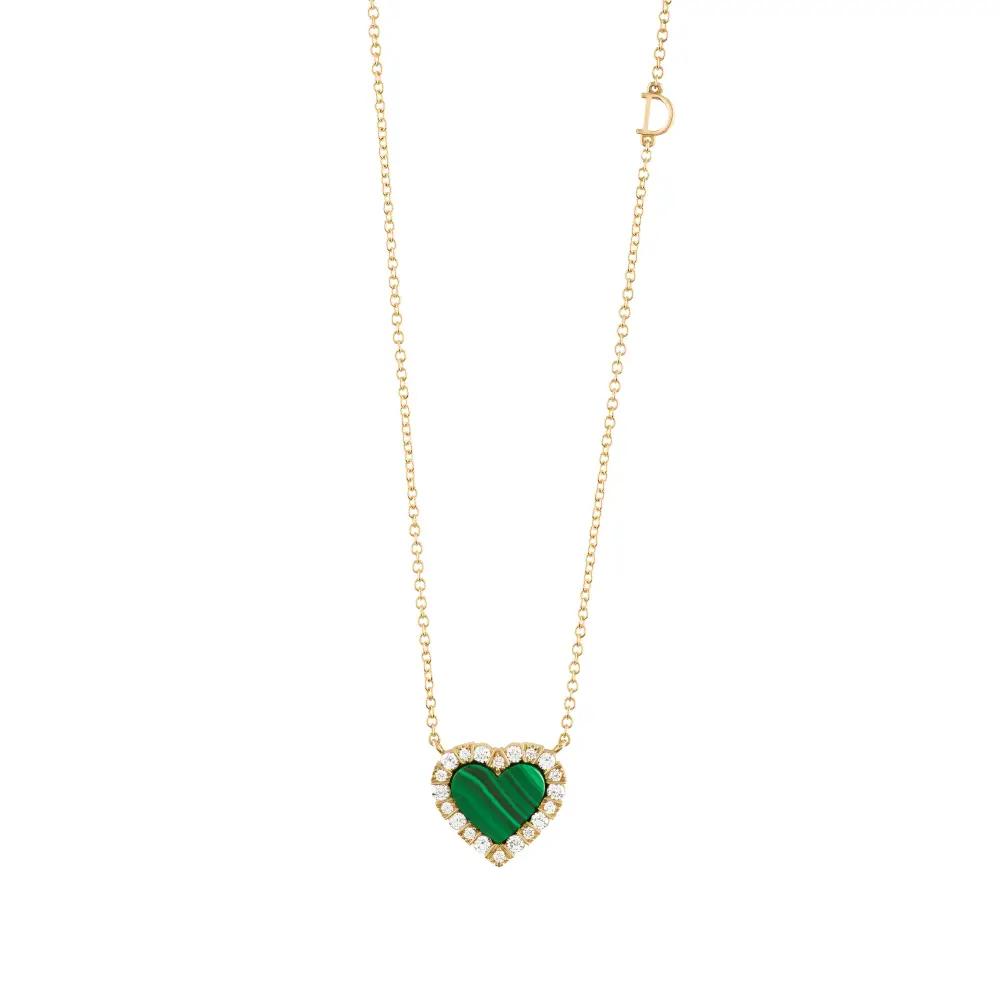 Collana oro giallo con malachite e diamanti 0.35 Ct.