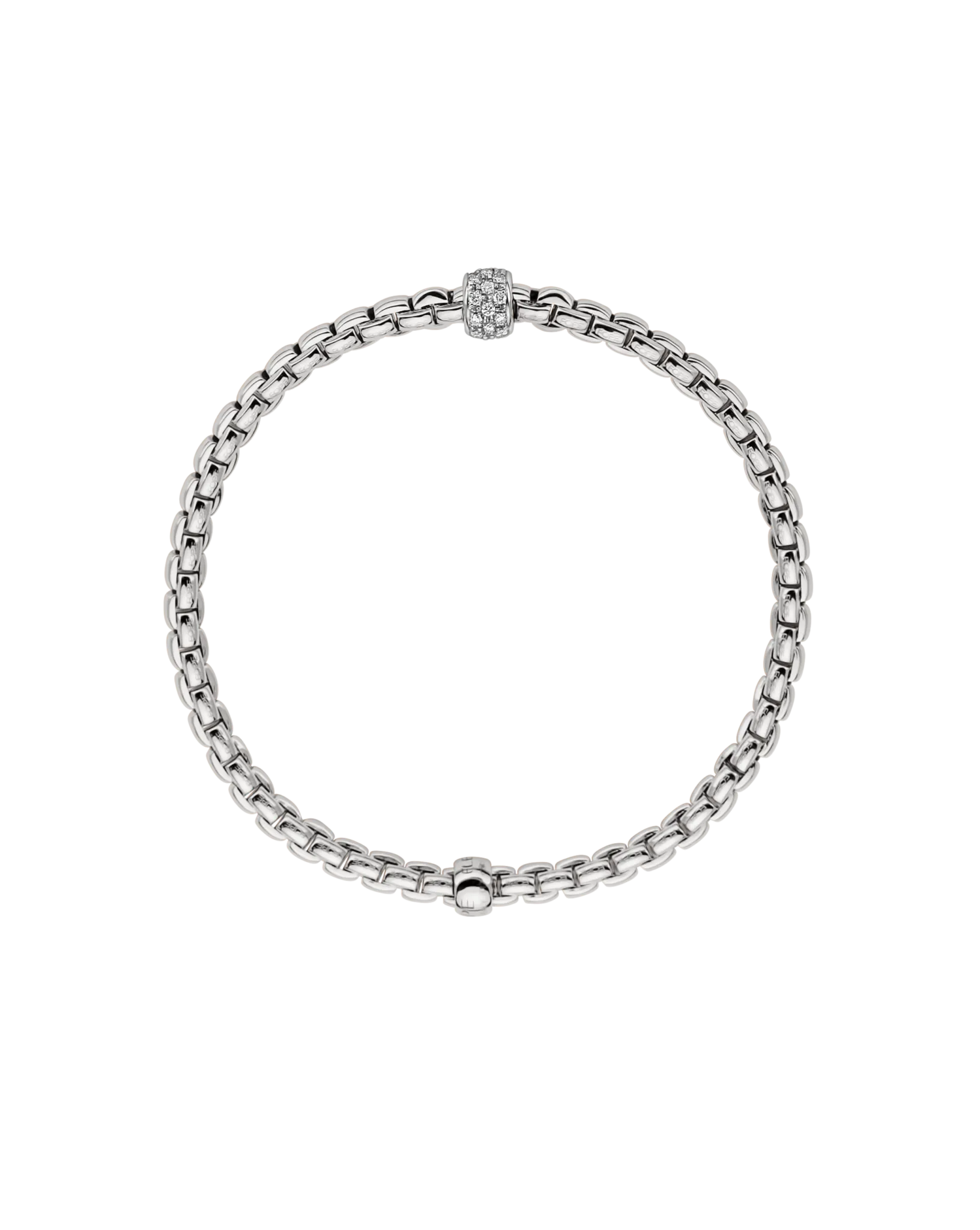 Bracciale flessibile in oro bianco 18 carati con rondella e pavè di diamanti