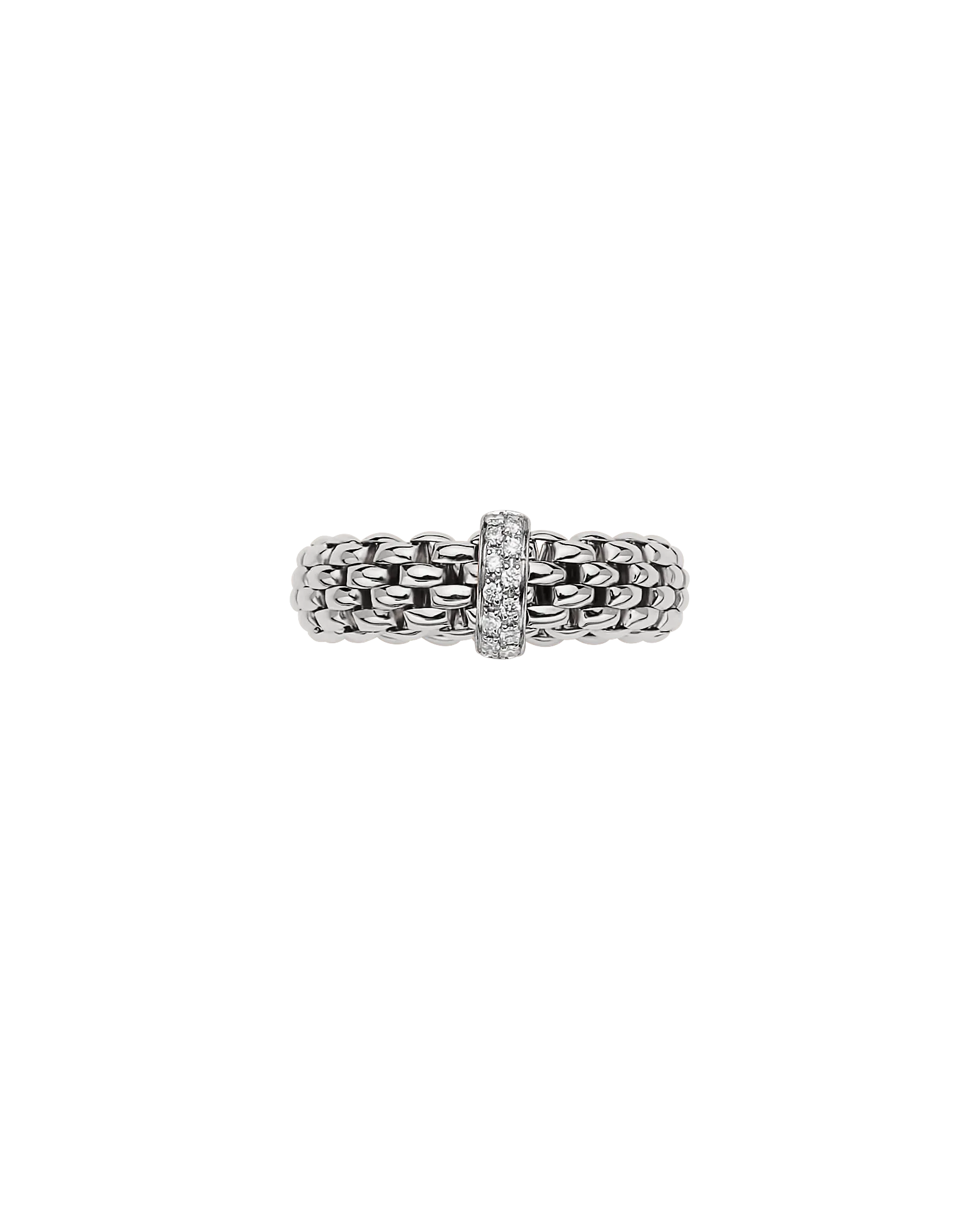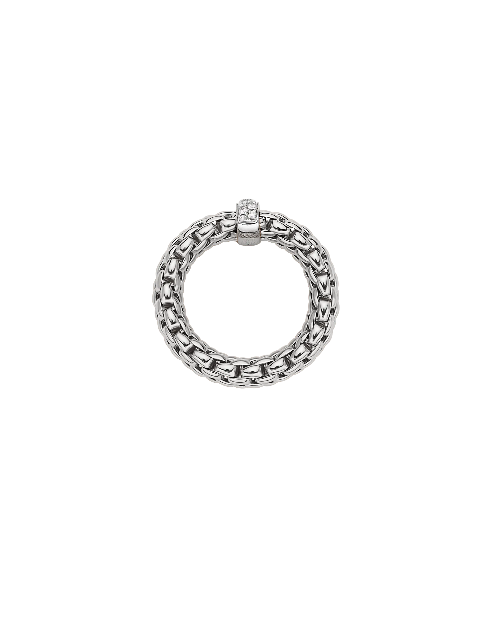 Anello flessibile in oro bianco 18 carati con rondella in oro bianco e diamanti 0,1 ct