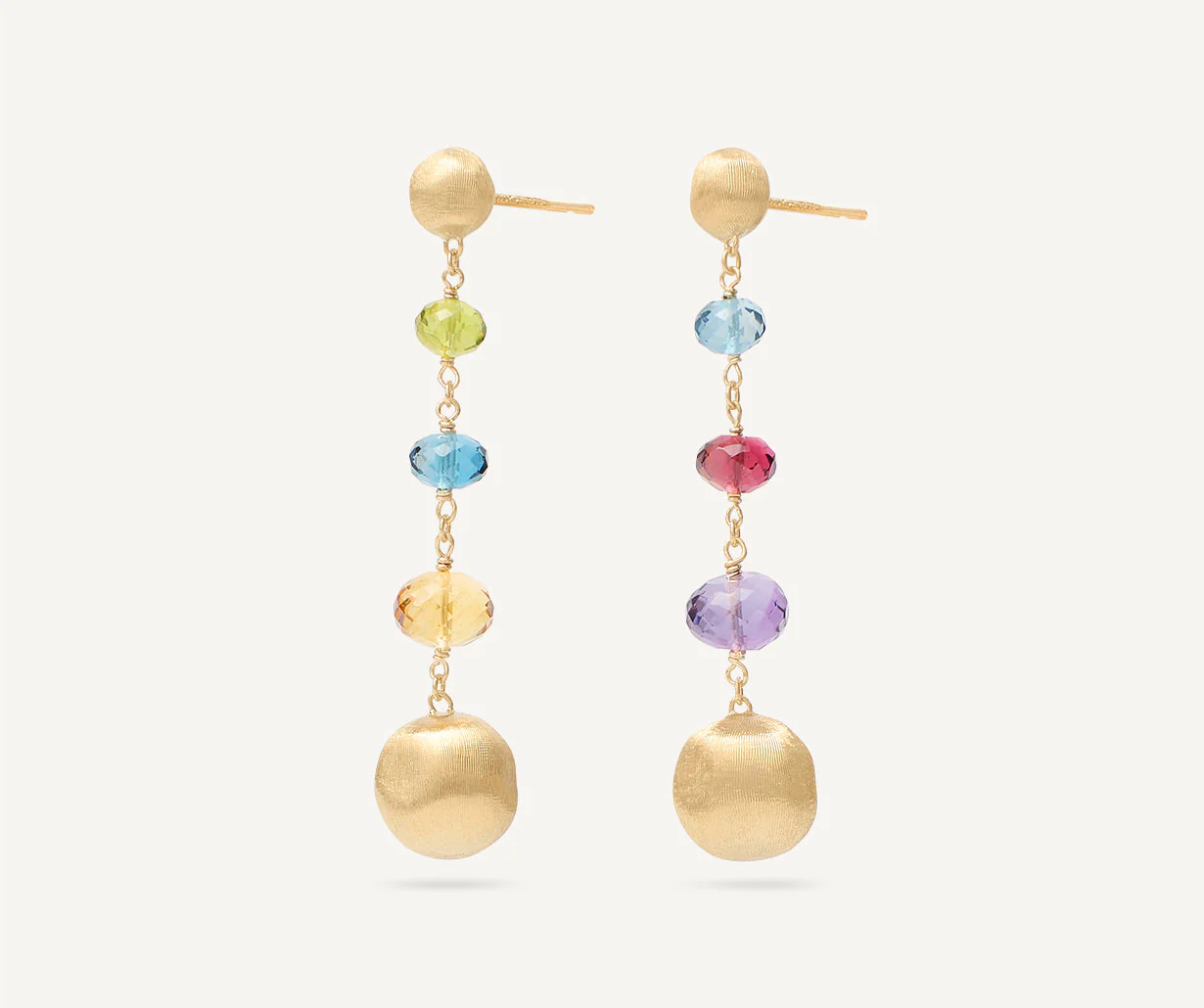 Orecchino chandelier oro giallo con preziose gemme multicolore e sfere oro