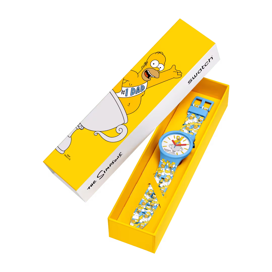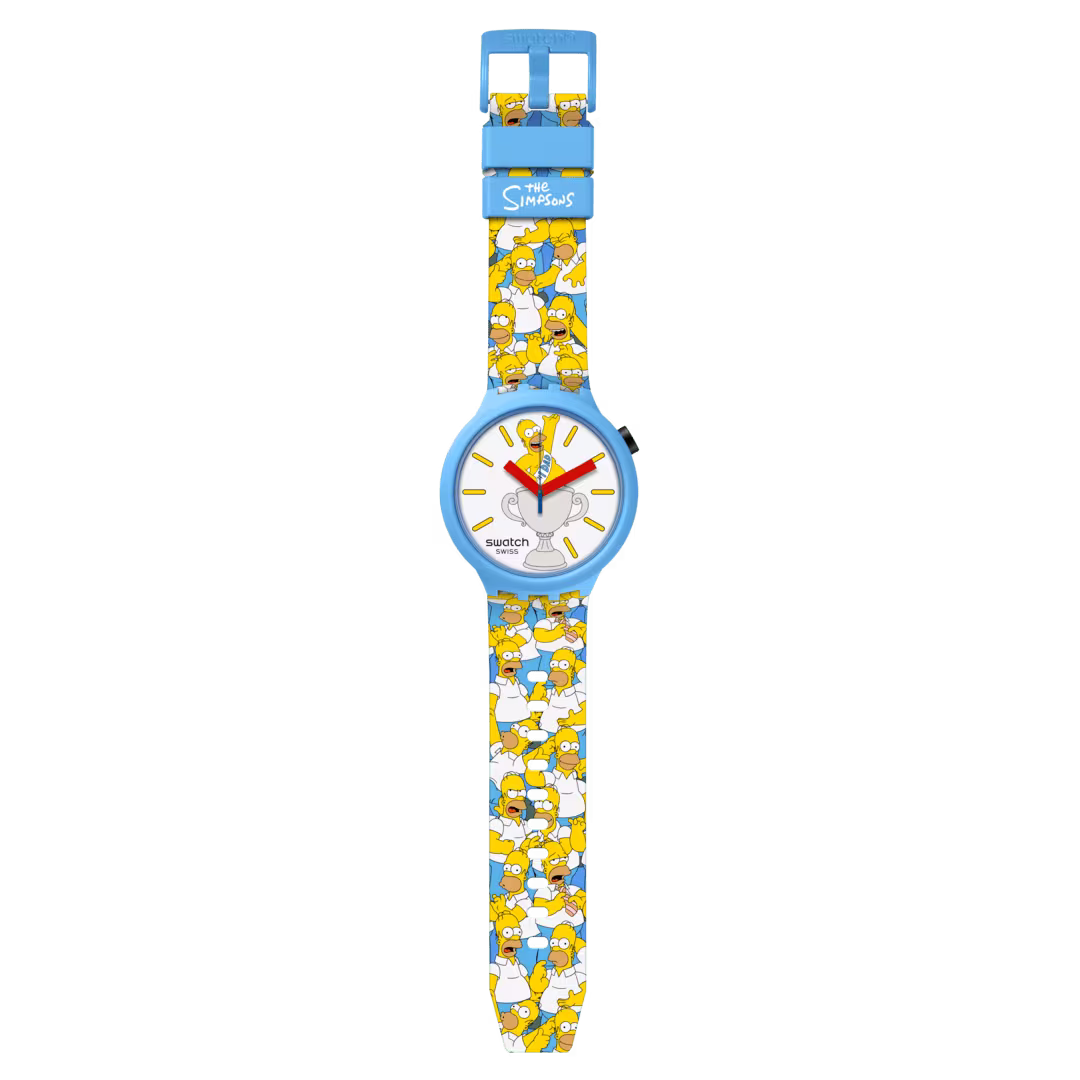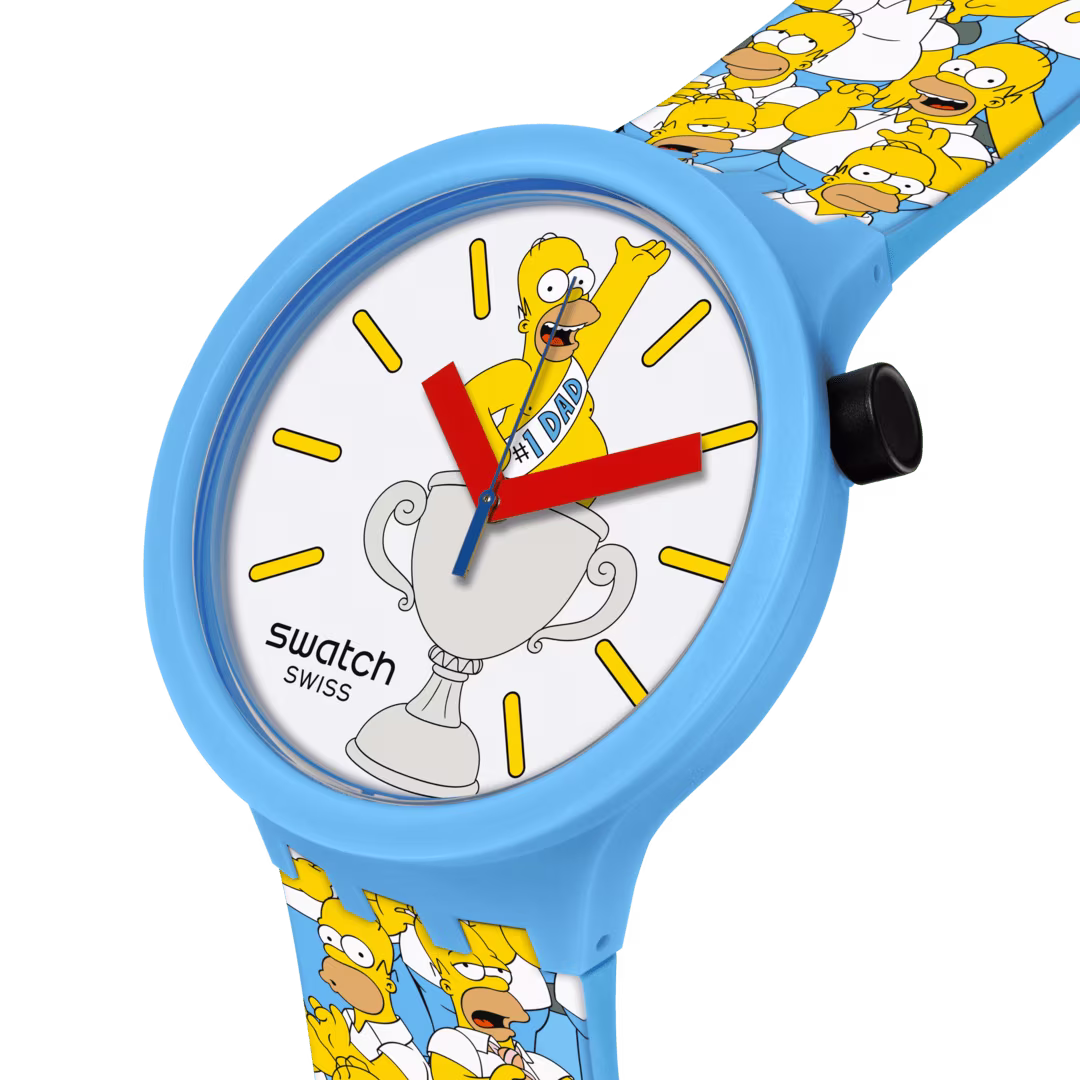 Orologio BIG BOLD dedicato alla Festa del Papà in silicone, alluminio e materiale di origine biologica, movimento al quarzo, impermeabile 3 bar che parte della collezione The Simpsons e presenta Homer Simpson stampato sia sul quadrante che sul cinturino, cassa, lunetta e vetro sono realizzati con materiale biosourced